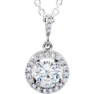 651092 / Necklace / Set / 14K White / Round / Charles & Colvard Forever One Lab-Grown Colorless-Def Moissanite / 6Mm :: 1/5 Ctw / I2, G-H / 18 In / Polished / Forever One Colorless Lab-Grown Moissanite Necklace