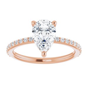 14K Rose 9x6 mm Pear Forever One™ Moissanite & 1/5 CTW Diamond Engagement Ring